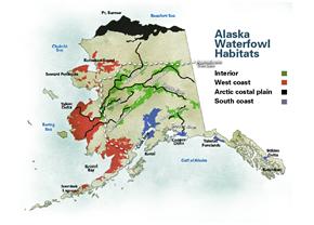 As Alaska celebrates 50 years of statehood, we salute its contribution to North America's waterfowl populations. Unfortunately, many states and provinces continue to lose habitat. As these losses mount, Alaska's role in maintaining healthy populations of ducks and geese has grown. Let's examine this role and look at some remarkable changes in breeding duck numbers in the state. To do that, we'll start with a brief description of Alaska's waterfowl habitat—no small task in a state of nearly 600,000 square miles.