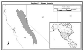 A gentle western slope demarks the Sierra Nevada (Region 15*), rising out of the Central Valley, forming jagged peaks, and a steep eastern face that slopes into the Great Basin. From 100 to 1,000 m the vegetation is dominated by grassland or oak chaparral. Above 800 m pines begin to dominate, until alpine habitats are reached near the summit. The most important wetland habitats are associated with the major tributaries of the Sacramento and San Joaquin Rivers. Lacustrine marshes also existed around Lake Tahoe, but several have been degraded for home development. Grass Valley and Sierra Valley are perhaps the best palustrine wetland complexes in this region. Over 90% of the riparian corridors in California have been destroyed or modified (Gilmer et al. 1982). Urban expansion in the next 10-40 years will concentrate on the Valley and its foothills. The human population in California is expected to double in the next forty years.