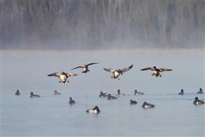 It's important to recognize that fall flights in excess of 400 million birds were probably rare. Our suggestion that the prairies could once support 30 million breeding pairs or 100 million total ducks assumes that most temporary and seasonal wetlands held water. In many years, large parts of the prairies were dry and the full carrying capacity of the duck factory would not be realized. Moreover, these incredibly wet years would have to be preceded by years of very good production if there were to be enough ducks to fill all those wetlands. Still, it's fun to imagine what it would be like to experience such a fall flight while sitting in a duck blind. We doubt that you'd complain about the noise.