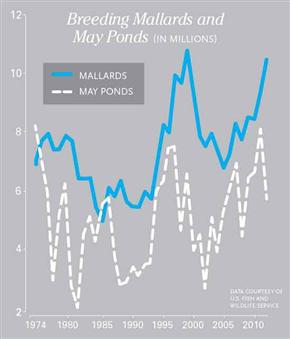 In addition, it has been known for a long time, since Professor Paul Errington's work at Iowa State University in the 1940s and 1950s, that numbers of mink generally follow the abundance of muskrats. When it's really dry, these wetland-adapted animals suffer too (smaller litters, reduced survival). And when water returns to the prairies, the wetlands and the ducks can respond much more quickly than do the resident mammals.