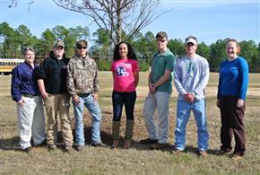 Statesboro High School Ducks Unlimited Chapter - Left to right: Lee Bratton, Chairman; Jim Rogers, Treasurer; Logan Plymel, Vice-President; Cheyanne Hill, Secretary; Andrew Dollar, JROTC Liaison; Scott Martin, President; Susan Jones, Assistant-Chairman