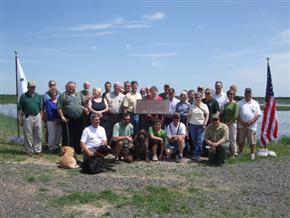 conservation gathered last June at the 600-acre Meadow Valley Flowage wetland-enhancement project in Juneau County. Among those assembled were DU Major Sponsors and volunteers, project partners, and federal representatives. In addition to the 30 Major Sponsors and their families listed on the plaque, project partners included the Wisconsin Department of Natural Resources, the North American Wetlands Conservation Council, the U.S. Fish and Wildlife Service, and the Stan Plis Sportsman's League.