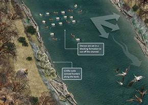 "Every one of these decoys provides some type of motion," Reed says. "In such an open environment, it's important to have a lot of movement to draw the ducks' attention away from the layout blinds. When they're coming in, they'll usually focus on all the commotion, and that's where they'll want to land."