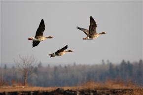 Even with such a massive decoy spread, Simon says that speckle-bellies don't need 3 or 4 guys blowing calls to get their attention. Often one hunter, mimicking the sounds of a lead bird, is all it takes to draw the geese in close.