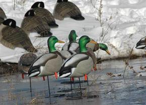 In this situation, Kovarik uses fewer decoys than normal. "I'll scale down to three dozen ducks and a dozen geese," he explains. "You don't need to do a lot of convincing. You just need enough decoys for passing birds to see."