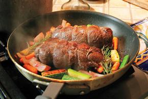 - Remove the pan from the oven and transfer the fillets to a cutting surface. Let them rest at room temperature for 5 minutes before removing the string and slicing the meat into 1-inch-thick medallions.