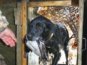 For additional concealment, we constructed camouflage "screens" around both ends of the blind, leaving enough space for a hunter to wade between the blind and the screens. We made our screens by pounding metal fence posts into the ground in a semicircle around the ends of the blind and attaching head-high woven wire fencing to the posts. Then we completely covered the wire with thick brush secured in place with zip ties. The screens help break up the blind's outline and provide additional cover for the doors and steps. The screens also provide ready concealment for hunters caught outside the blind when ducks show up. (It's remarkable how often this happens during the course of a hunt.)