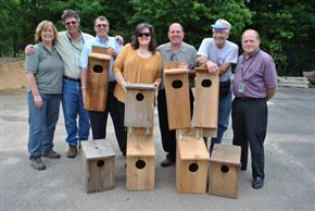 PSE&G employees present wood duck boxes to be installed at Ash Brook Reservation. L-R: Betty Ann Kelly, Union County Division of Park Planning & Environmental Services; Jeff Holbrook, PSE&G; Mike Panos, Ducks Unlimited; Isabel Goncalves-Rooney, PSE&G; Tom Brauchle, PSE&G; Marc Grobman, Union County Adopt-A-Trail steward – Fanwood; and Daniel Bernier, Union County director of the Division of Park Planning and Environmental Services.