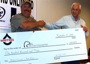 BISMARCK, N.D., Sept. 27, 2011—Whiting Petroleum Corporation recently contributed $100,000 to Ducks Unlimited for specific conservation action on the western edge of North Dakota's