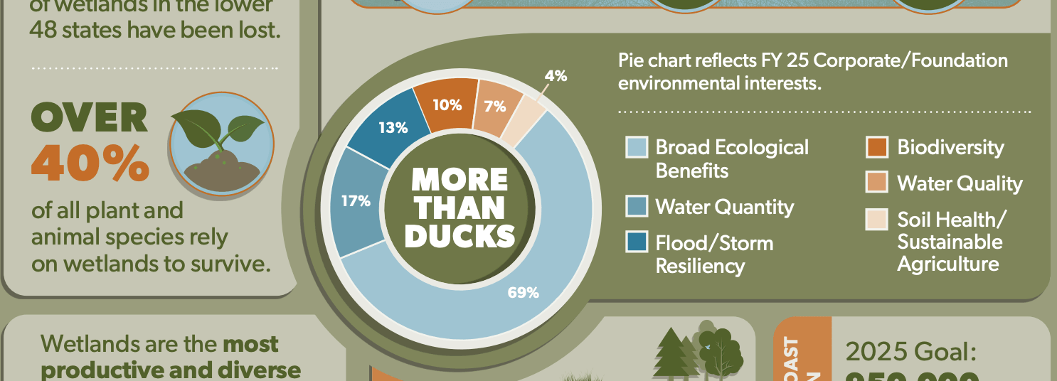 Wetlands conservation has a significant positive economic and environmental impact. See how many jobs are generated, greenhouse gas emissions are avoided and sediments captured through DU continental projects.