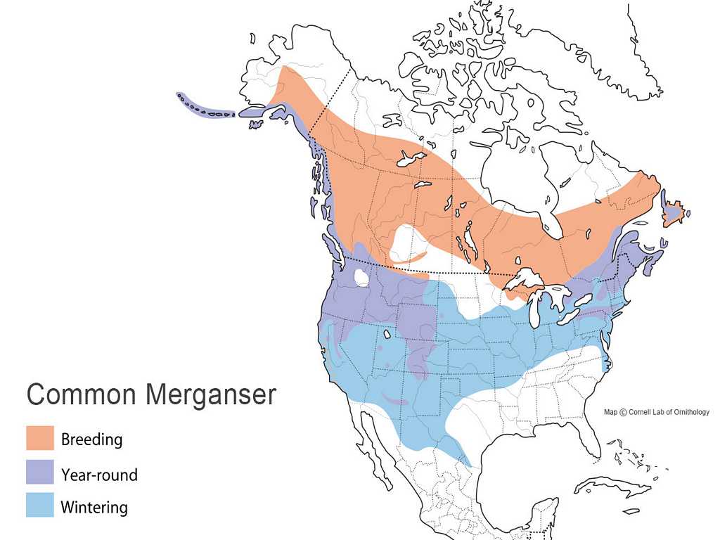 - Breeding: Common Mergansers are typically found in boreal freshwater lakes and rivers.